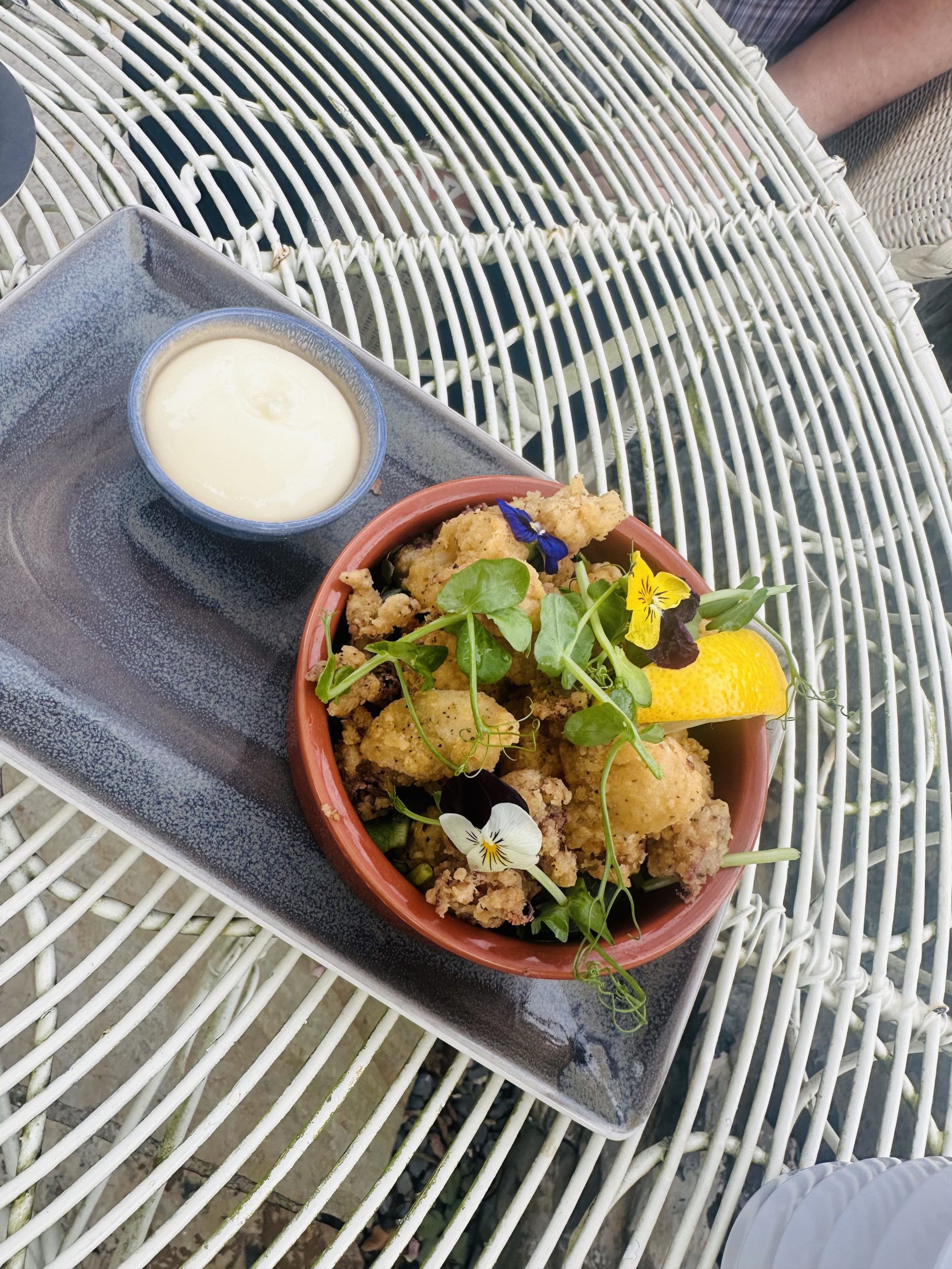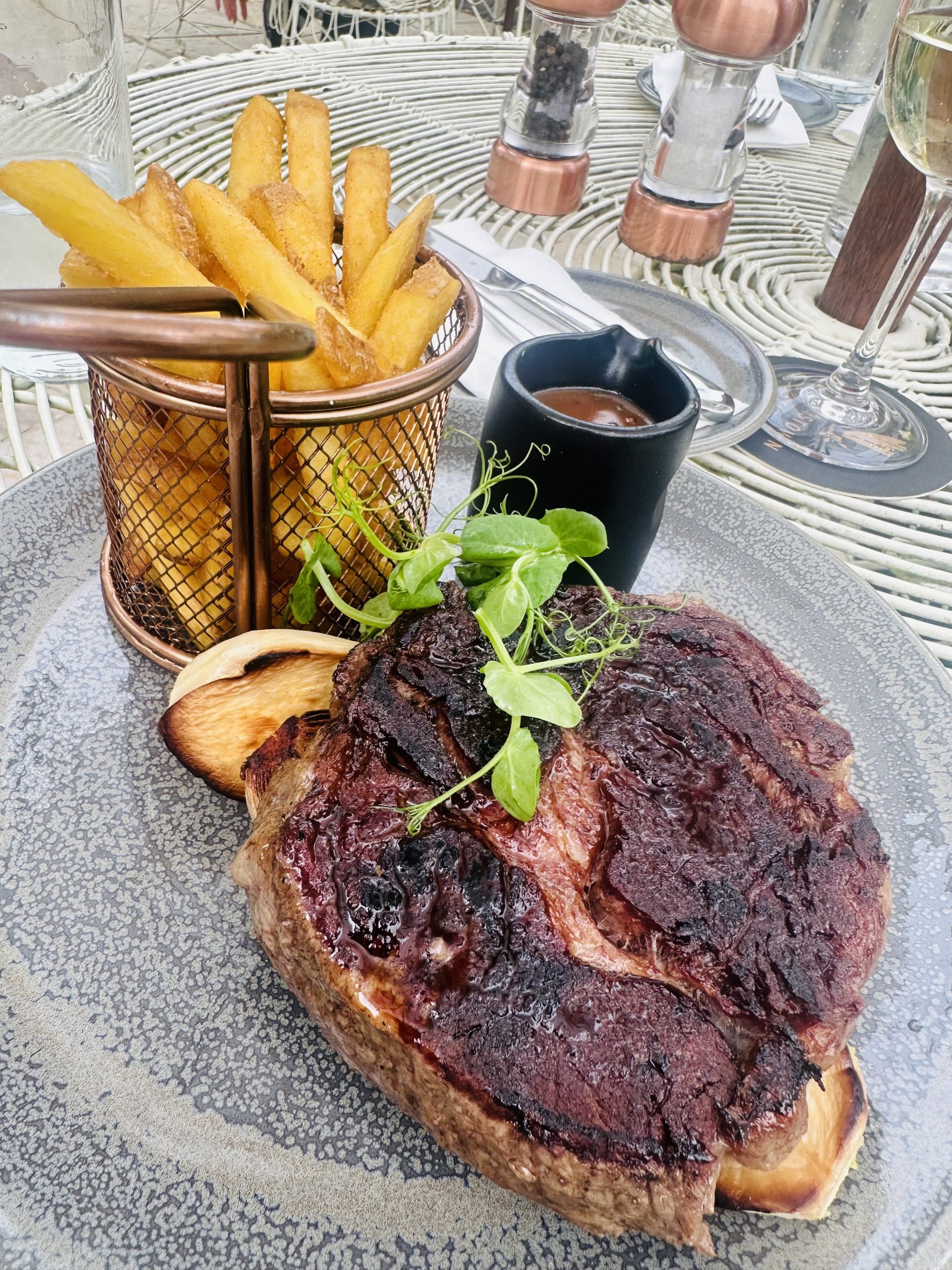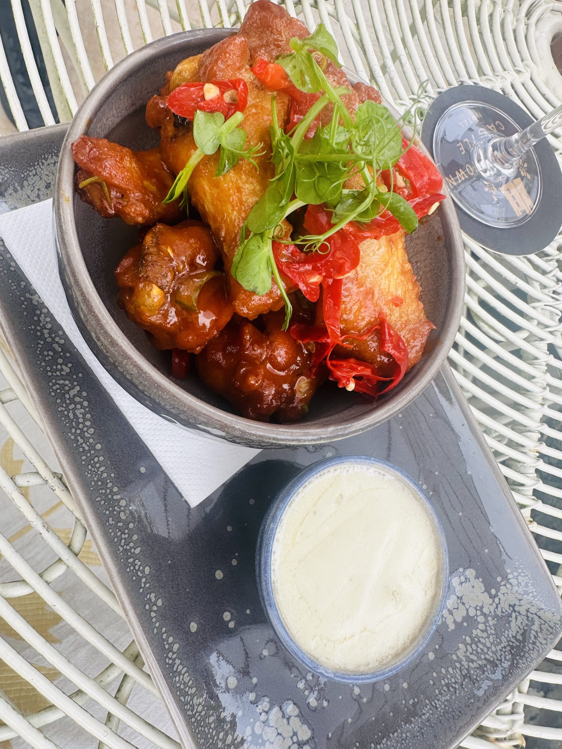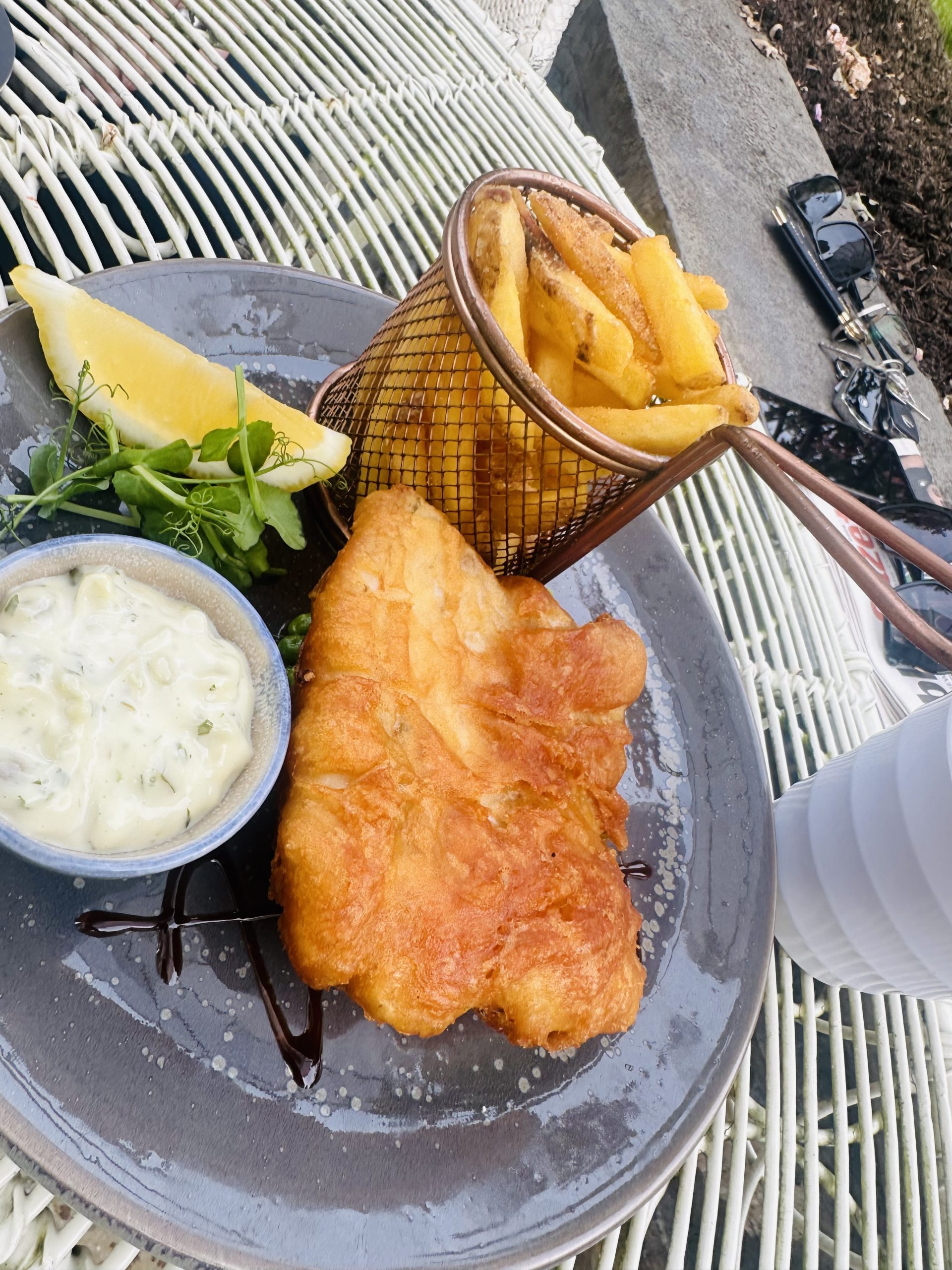 Dinner was a highlight of our visit, enjoyed in the charming Garden Bar. We were fortunate to dine outside, taking full advantage of a gorgeous evening. The setting was idyllic, and the meal was nothing short of phenomenal. We began with perfectly cooked calamari and flavorful wings, each dish a testament to the culinary expertise at Barberstown Castle. For our mains, we indulged in a succulent steak served with oyster mushrooms, roast shallots, fries, and peppercorn sauce—an exquisite combination that was simply divine. The fish and chips, featuring the catch of the day in a crispy beer batter, accompanied by crushed peas and tartare sauce, was equally impressive and well worth the €21 price tag.