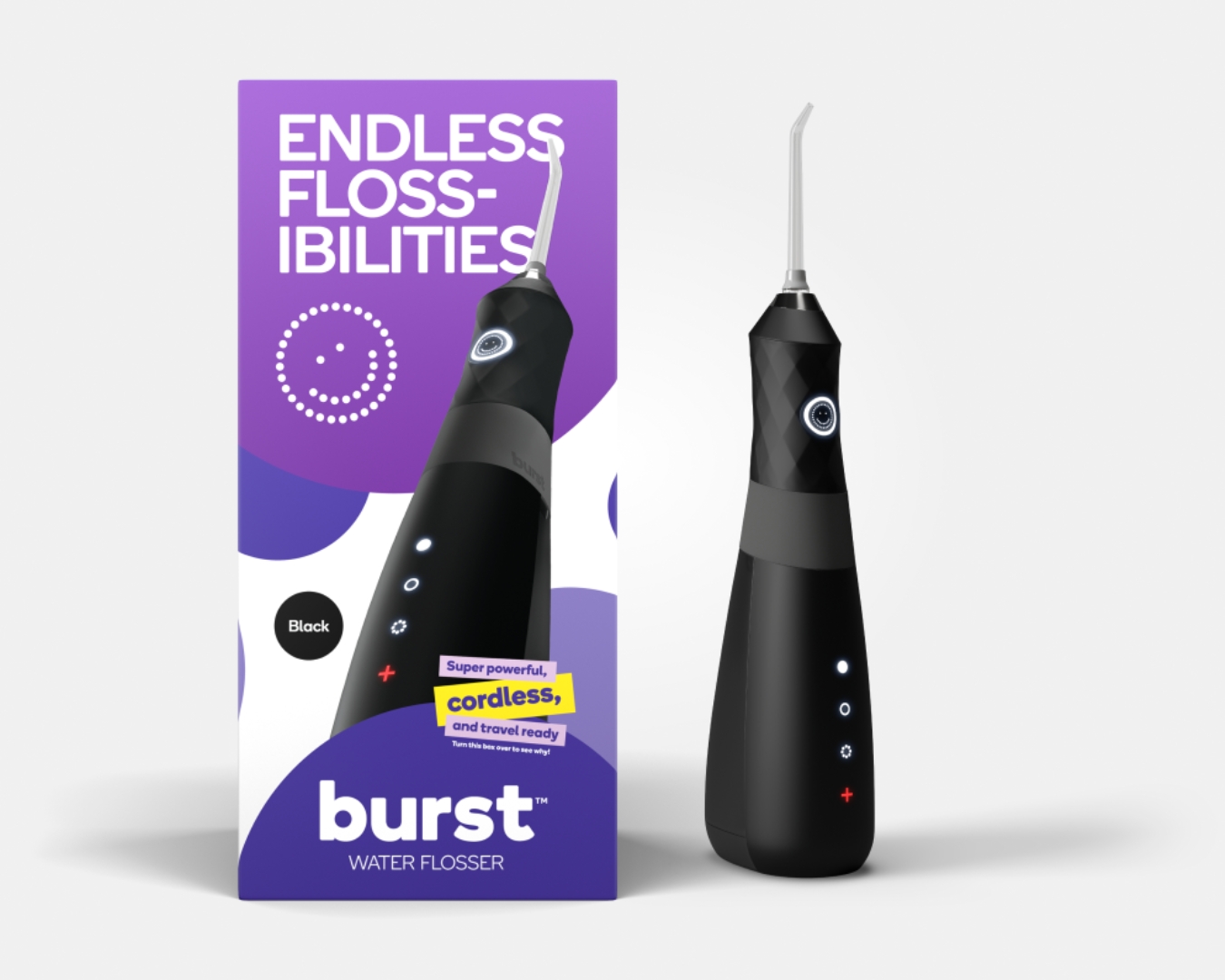 BURST’s Expanding Floss is clinically proven to remove X2 more plaque than regular unwaxed floss. The BURST Water Flosser however is a compact, cordless electric flosser that has a powerful water jet to deeply clean between teeth and along the gum line. Perfect if string isn’t your thing! With a 360° rotating tip, it aids the removal of plaque, food, bacteria and leaves your mouth feeling refresher.