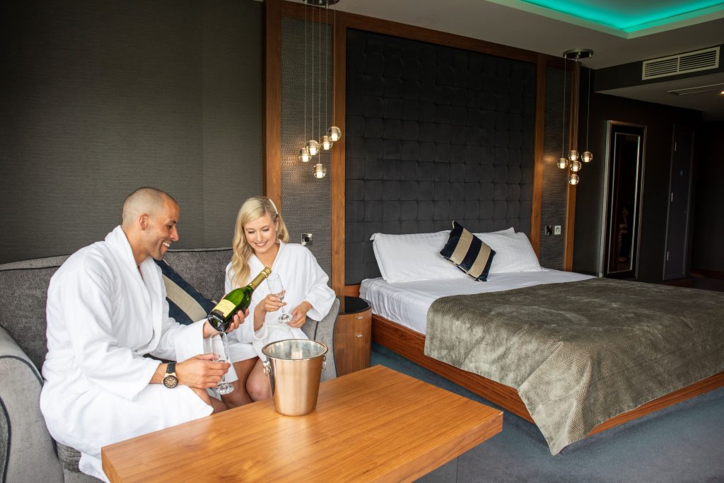 Top of our wishlist is the four-star hotel’s Suite Treats package, available all week from €269* for two people. You’ll be greeted with Prosecco and chocolates in your room on arrival, setting the tone for a romantic stay. Accommodation is in one of the hotel’s gorgeous Couples Deluxe rooms or Junior Suites, located on an adult-only floor of the hotel and featuring king-size beds and mood lighting along with a romantic cuddle couch, perfect for snuggling up to watch your favourite shows on the room’s 65-inch TV. Bathrooms feature a unique glass wall that looks out onto the bedroom along with a double shower and jacuzzi bathtub. The package also includes a three-course evening meal in The Moorings Restaurant where the menu showcases local, seasonal produce, served against the stunning backdrop of the River Slaney. The next morning, you’ll enjoy a full breakfast served directly to your table.