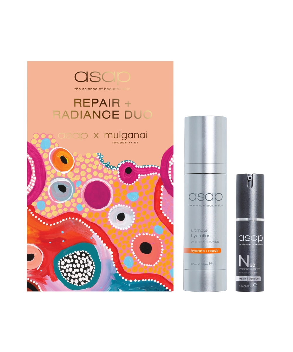 This Christmas, give the gift of radiant skin with asap‘s exclusive, limited-edition skincare gift box, beautifully crafted in collaboration with renowned Australian Indigenous artist Emma Hollingsworth.