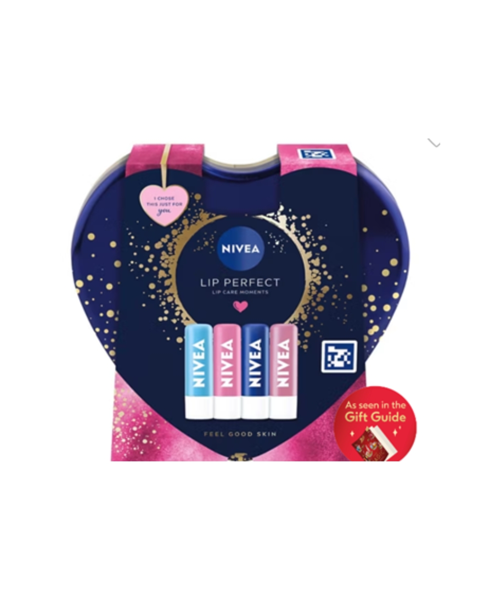 This delightful NIVEA LIP PERFECT collection has 4 moisturising lip balms, comes in a fun heart shaped keepsake tin and is the perfect stocking filler. Featuring the Soft Rose Caring Lip Balm for a rosy tint, Hydro Care Caring Lip Balm (with SPF 15), Original Care Caring Lip Balm and finally the Pearly Shine Caring Lip Balm enriched with pearl extract for a shiny touch. This gift set appeared in the Boots Gift Guide Magazine.