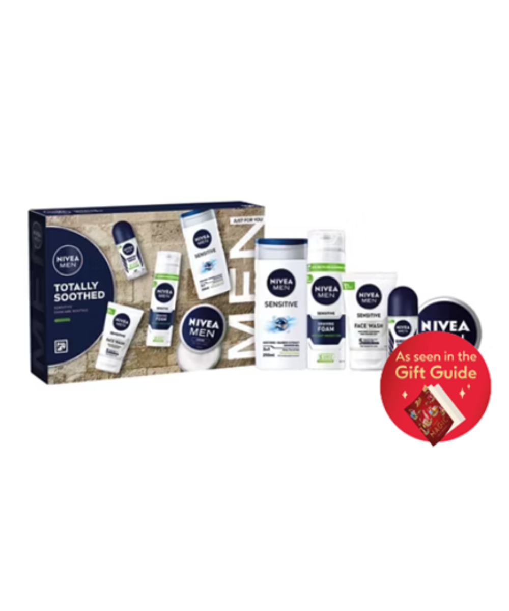 Conquer the five signs of skin irritation with this five piece Sensitive Gift Set from NIVEA MEN. This NIVEA MEN TOTALLY SOOTHED collection has all the sensitive skincare essentials you need for a complete grooming routine, leaving your skin feeling soothed and calm. Containing the Sensitive Shaving Foam, Sensitive Protect Anti-Perspirant Roll-On, Sensitive Face Wash and famous NIVEA Men Crème. This is the perfect gift for the man who likes to take care of his skin. This set was featured in official Boots Christmas Gift Guide magazine.
