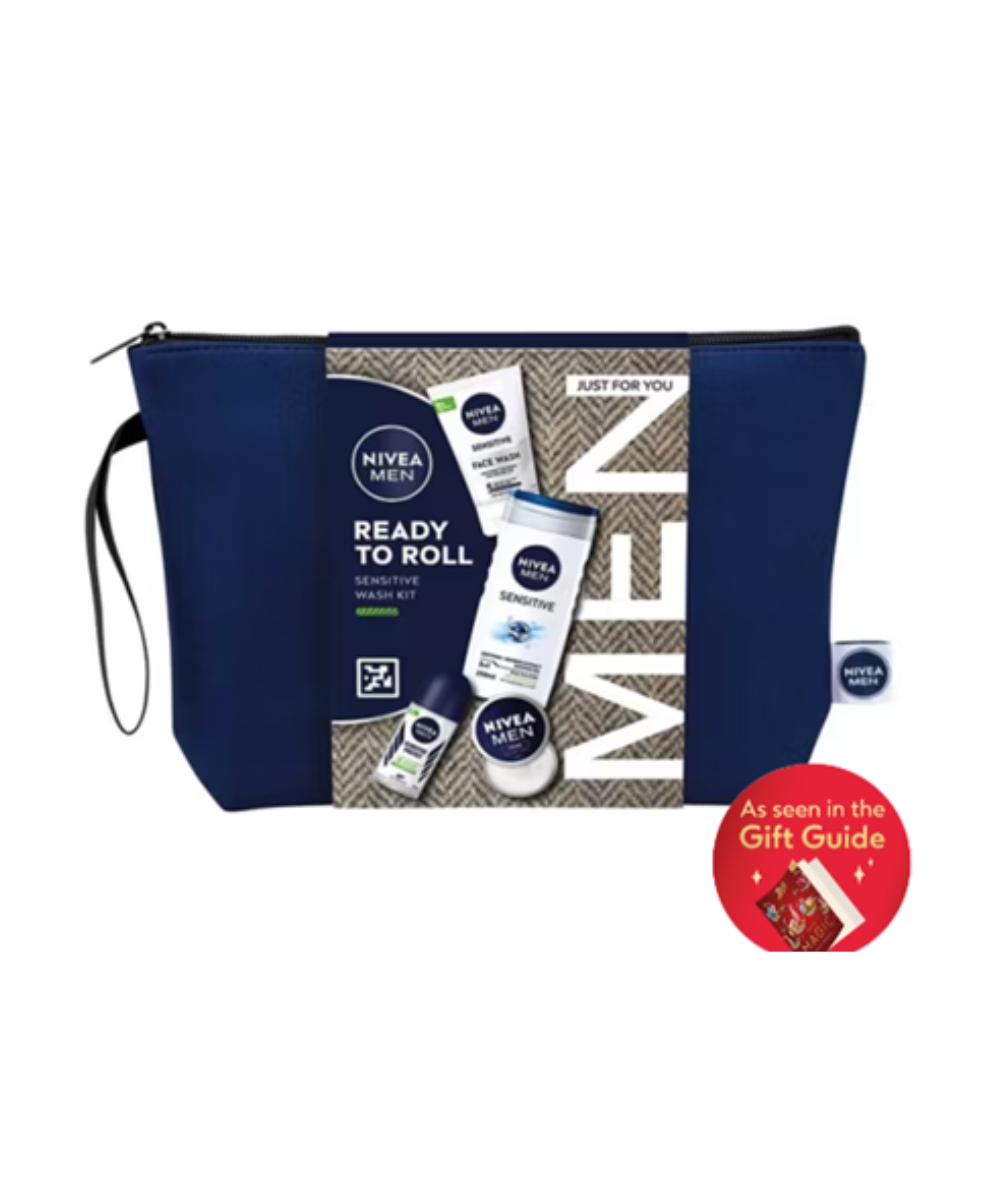 This NIVEA MEN READY TO ROLL gift set includes everything he needs to keep his skin looking and feeling its best. Treat him to 3 sensitive skin favourites to nourish and invigorate the skin teamed with our much-loved NIVEA Creme. Plus, a stylish Neoprene waterproof wash bag makes the perfect travel companion for the active man. This set was featured in official Boots Christmas Gift Guide magazine.