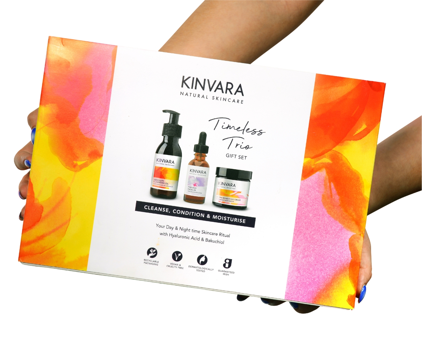 The luxurious Timeless Trio gift set offers you a complete skincare routine featuring the multi-award-winning Absolute Cleansing Oil, Active Rosehip Day Cream and the Precious Facial Oil.