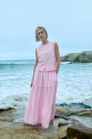 For a more coordinated look, the Preveli Top (€40) and Deia Skirt (€45.99) offer a modern take on summer co-ords. Both pieces are crafted from breathable 100% cotton poplin and feature a scalloped broderie hem. The tiered maxi skirt is designed with a comfortable pull-on waistband, while the top features a button-down front and tie detail at the back. Together, they create a look that feels polished without effort.