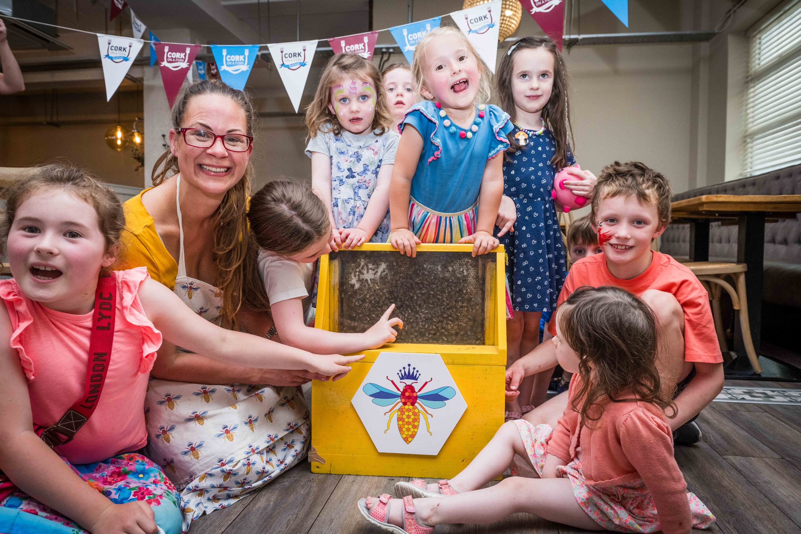 - Enjoying bee themed Afternoon Bee with Hanna Backmo of Hanna’s Bee are Lucy O Neill, Ciara Murphy, Meave Spillane, Fiadh Murphy, Ruth O Neill, Érin Murphy, Thomas Spillane, Ciarán Spillane and Áine Murphy during Cork on a Fork.