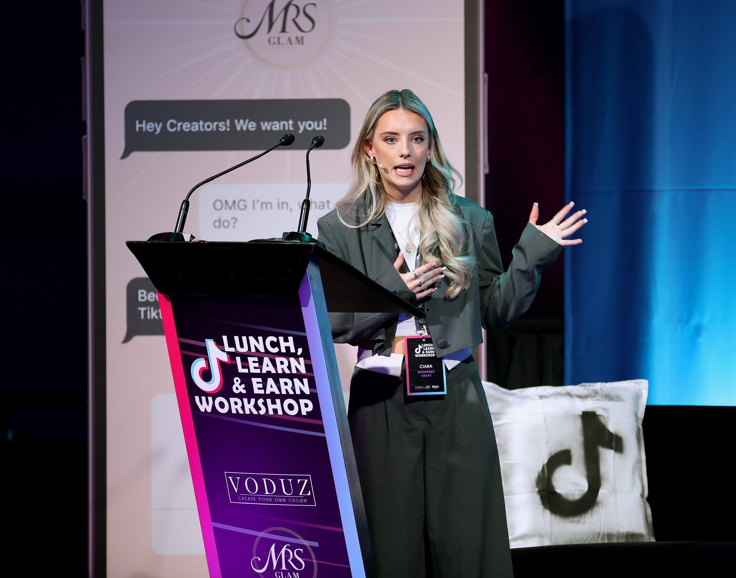 The event, hosted by the charming and charismatic Gerry Lavz, delivered an unforgettable day of insights, inspiration, and interactive opportunities. Industry experts such as TikTok Ireland’s Katey McElroy explained TikTok Shop’s role in Ireland and how successes in other markets opened doors for Irish creators. Voduz Marketing Manager Michéal Campbell and BPerfect Social Media Marketing Manager Ciara DeCarteret shared the success their brands had already experienced in the UK Market using the platform, highlighting opportunities for Irish creators to follow suit.