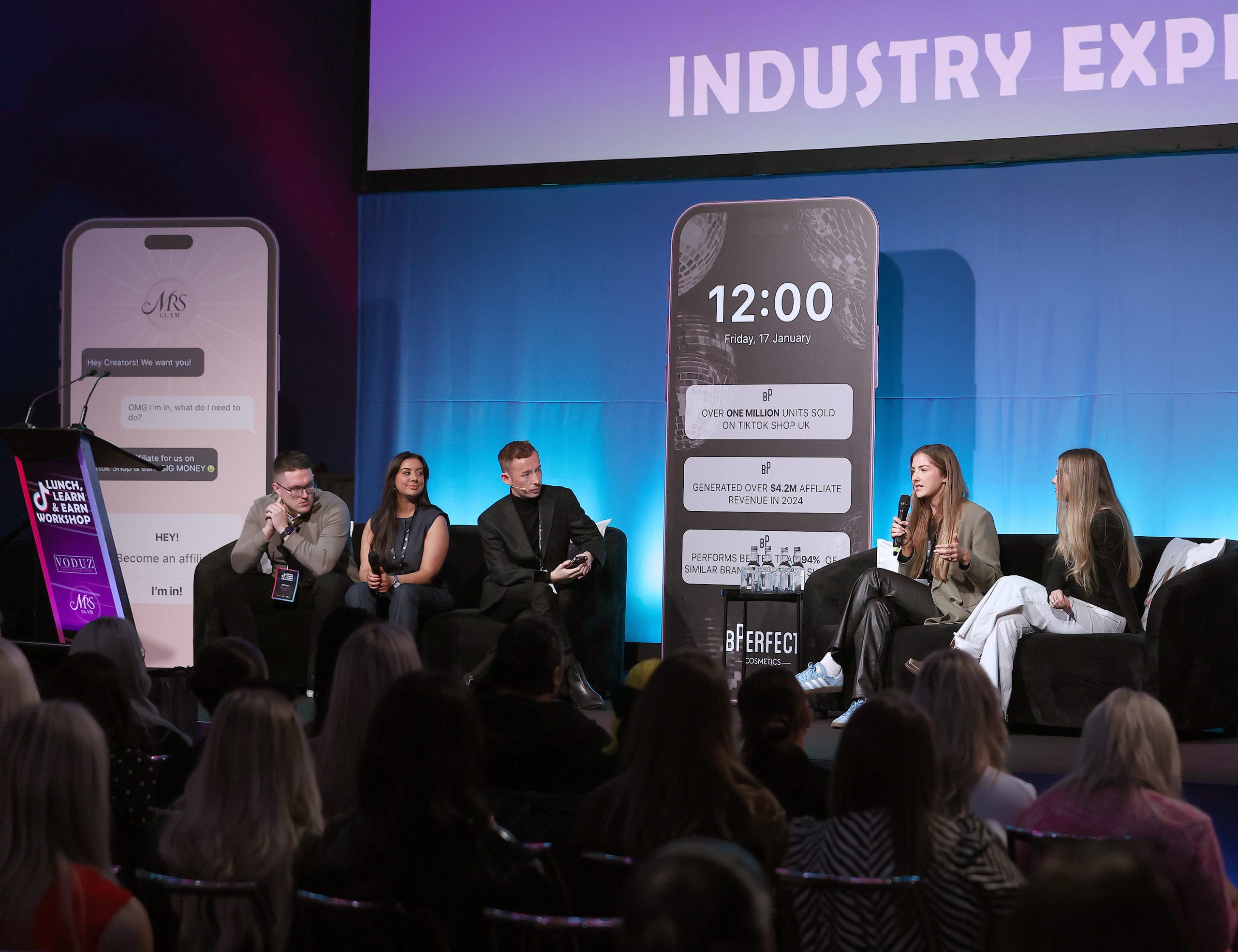 The afternoon included a variety of workshops, such as “How To Sell On Live Streams,” hosted by Sean Murphy, TikTok Live Marketing Executive at BPerfect Cosmetics, and Aoife Hughes, Social Media Marketing Executive at Voduz. These sessions taught creators about optimal setups, timings, and ultimate engagement tactics. Affiliate success stories were also shared, with established creators such as Stephanie Vavron, alongside Melissa Jade (400k+ followers), JustNina (315K+ followers), and Jenny from WinginMaLife (170k+ followers) sharing their journeys, content tips, and hosting a live Q&A session. These stories armed attendees with the knowledge they needed to achieve their goals.